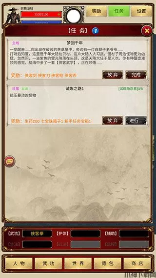侠客回忆录官方版是一款文字放置武侠游戏,用简单轻松的方式描绘一个古典武侠世界,在这里,你将扮演一位未知身份的江湖人士,体验一个完全自由的纯粹的江湖。