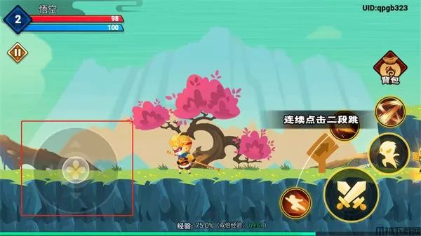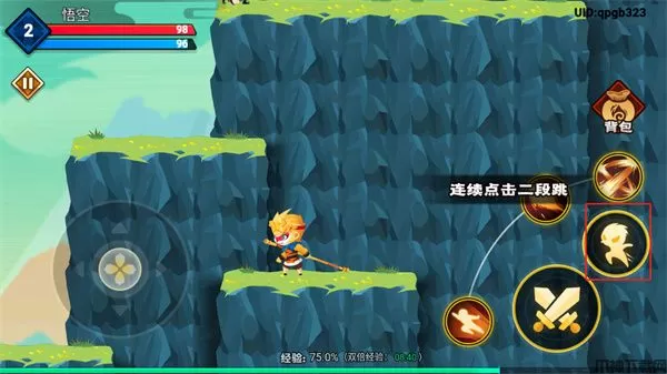 5、游戏右下角还有一个跳跃按钮,连续点击即可进行二段跳;