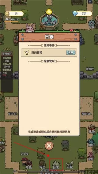 2、多看日志,日志在屏幕底部,天赋按钮的旁边。日志里面有详细介绍怎么玩,还有任务提示。
