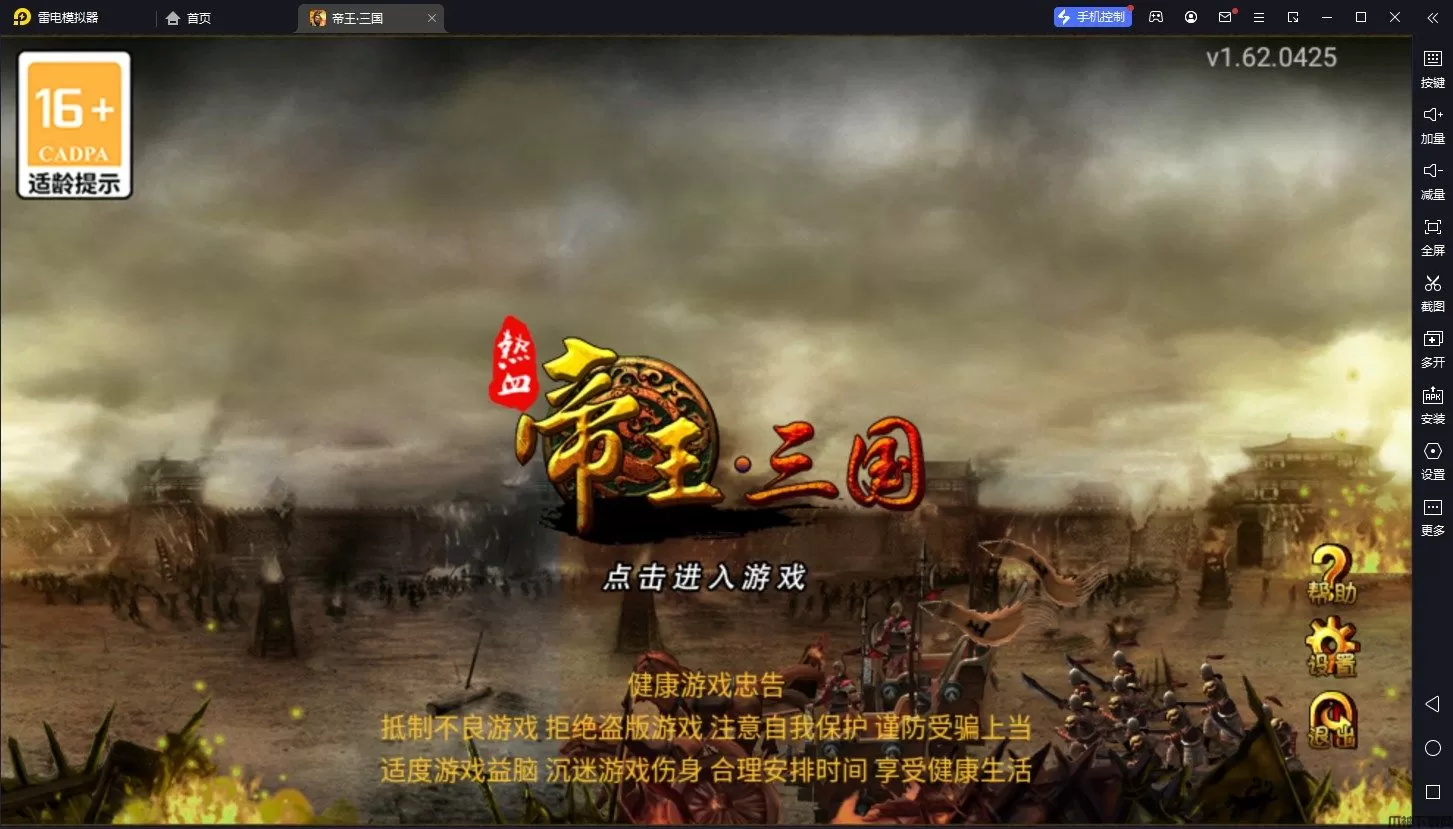 帝王三国电脑版是借助安卓模拟器而运行的一款以三国为题材的策略战争游戏,在游戏中玩家可以自由选择一方势力加入,在取得城池成为城主之后还可以建立自己的国家,不断占领敌国城池扩大自己的版图,最终统一天下。在游戏里还拥有将领、装备、建筑、兵种、国家、战略、师徒等多种玩法系统,只为带给玩家惊险刺激的三国万人国战。