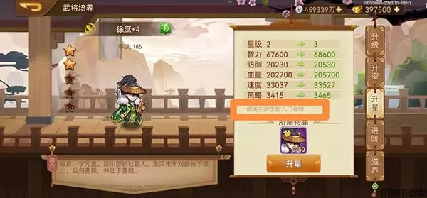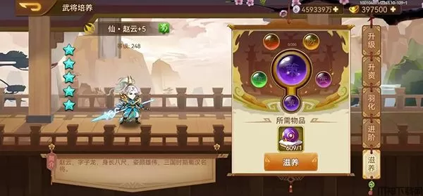 3、而进阶丹的消耗更是巨大,一个武将升绝需要5095颗进阶丹,升无双需要8400颗进阶丹。