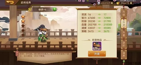 1、提升武将面板最有效的方式之一,每一级提升都能带来各项属性的显著提升。