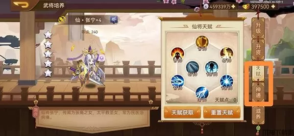 4、仙将天赋首先要消耗仙魂和仙丹获得天赋点,最多可以获得80点天赋点,需要消耗仙魂仙丹各400颗,然后用天赋点升级天赋。