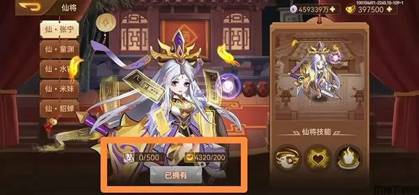 2、不同仙将仙魂获得方式不一样,如张宁可以洪荒天和活动获得,童渊九州攻城获得。
