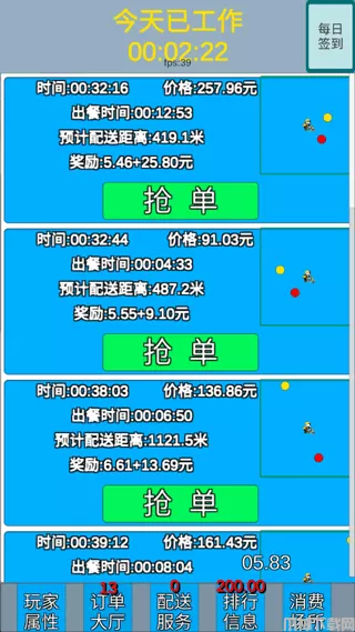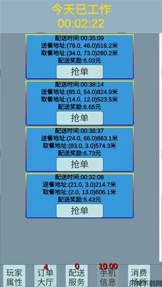 2、在送外卖的时候玩家需要快速的进行抢单,如果第一时间反应过来的话,就会被别人抢走。