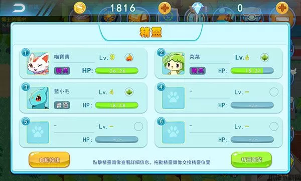 在菜单中打开精灵列表,然后拖动精灵头像至1号位,即可交换为首发出战的精灵。