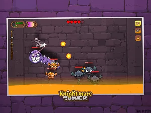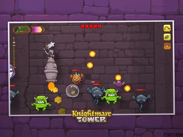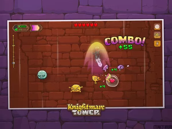 游戏中砍杀怪物有机会出现红心,玩家要控制骑士下落的位置吃到红心。吃到红心就能补充一格生命值。