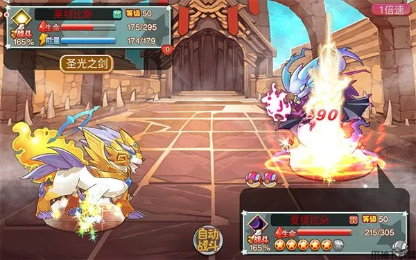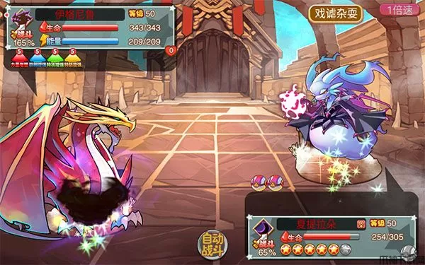已进化次数越多的怪兽稀有度越高属性越高,技能越强大(未进化:绿,幼体)(一次进化:蓝,幻化)(二次进化:紫,究极)(三次进化:橙,不朽)