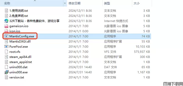 1、解压后,找到MantisConfig.exe运行,这个就是游戏制作方提供的游戏画质修改工具。