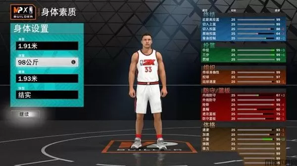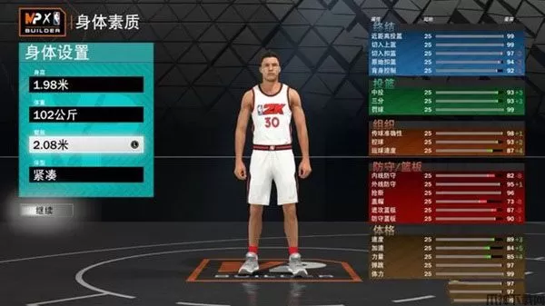 1、本作的建模菜单采用了《2K22 次世代》的建模方式,通过调整球员的身体数据以决定各项能力所能抵达的上限。
