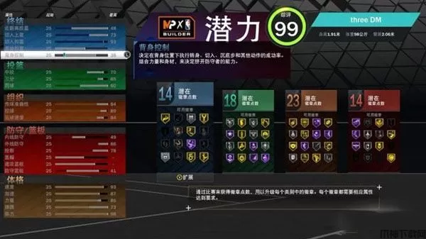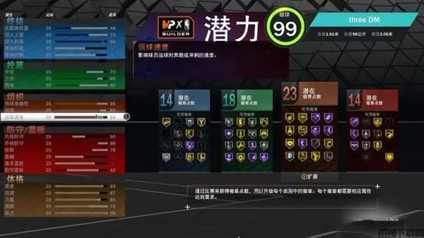 5、每项能力都会与特定的其它能力关联,每当提升某项能力至较高的水平,都会带动其它几项特定的能力一同提高。6、举例:想要点出93点的切入扣篮时,需要以73点的切入上篮和48点的近距离投篮作为基础。