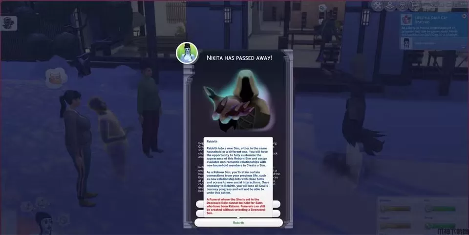 假设你的模拟市民没能逃避死亡,他们已经彻底消失了,但他们在去世前完成了《生死》资料片中新增的大部分灵魂之旅。别担心——如果你不想回到原来的生活,可以考虑用那个模拟市民重新开始新生活。