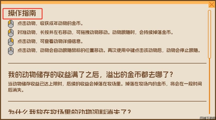 - 鼠标左键对准动物,长按并左右移动,可拖拽动物移动。动物跟随时,会持续掉落金币。