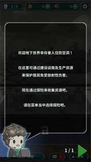 1、下载安装进入地下世界庇护所游戏后,我们便可以看到详细的新手引导教程,在这你可以学习游戏的入门知识。