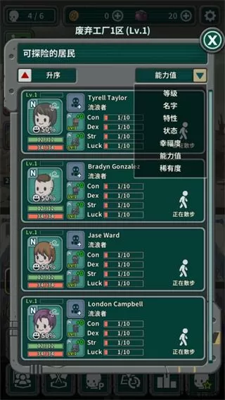 4、你可以选择需要探险的居民,当你不知道选择谁时,可根据他们的能力值陪伴你一同探险。