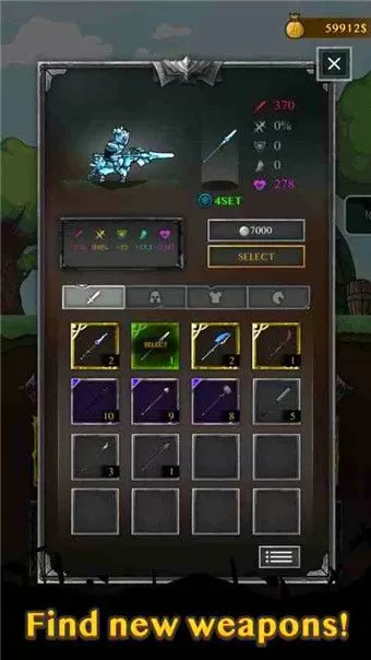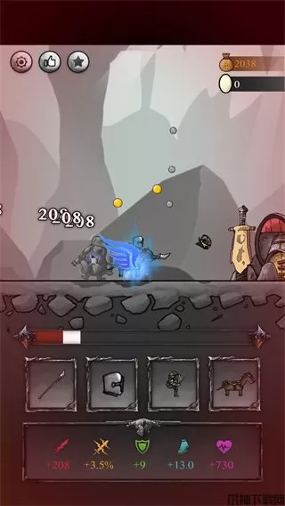 1、丰富不同的武器装备和技能,收集极品装备打造最强骑士。