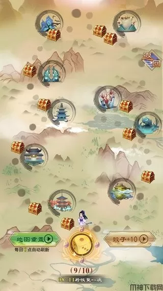 4、云游:云游就比较有意思啦!在这里玩家可通过掷骰子的方式来让修真者进入不同的空间进行灵气的收集,当中还有不少的随机事件发生,以保玩家的游戏乐趣。