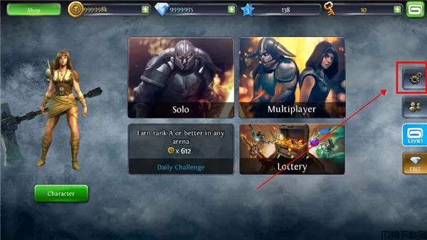 1、下载并打开地牢猎手3,点击屏幕右方的齿轮;
