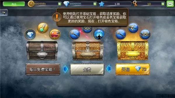 钥匙:开启竞技场结束后的宝箱,获取奖励,每天赠送。