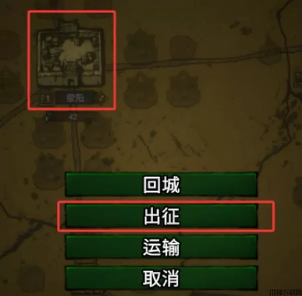2、选择主城荥阳,点击出征