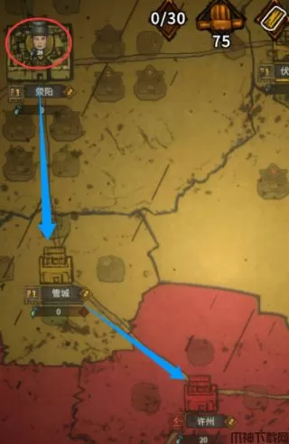 6、大地图上的人头就是部队,会沿着路线行进到目标据点开始战斗