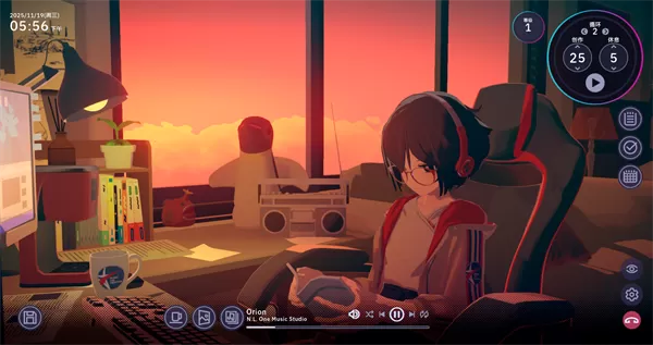 放松时光与你共享LoFi故事电脑版是一款有声小说游戏,玩家将与喜欢写故事的女孩聪音一起协作创作。游戏结合了有声小说与创作辅助工具的功能,包含待办事项列表、日历、笔记等功能,可帮助用户规划任务,游戏还支持玩家自定义音乐、环境音和风景,如窗外的风景、马克杯的样式等等,以营造专注的工作氛围。此外,放松时光与你共享LoFi故事游戏内玩家可通过番茄钟计时进行创作积累经验值,提升等级后解锁更多故事情节及环境道具,比如各种生动的音效,并随着与角色聪音的互动深入,逐步发展彼此的关系。