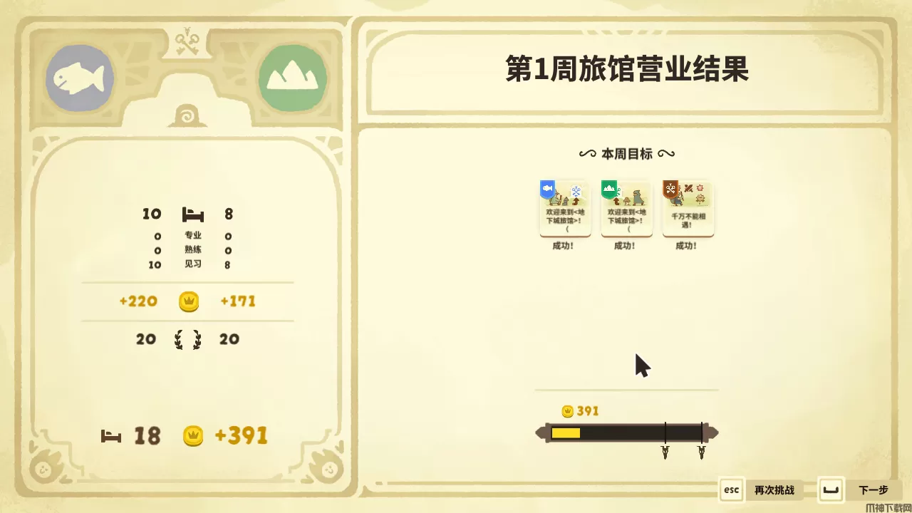 2、游戏的每一周都有相应的目标,玩家完成可以获得相应的奖励。