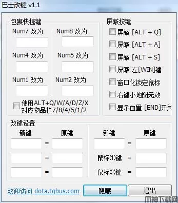 巴士改键是电玩巴士dota英雄站推出的一款改键显血工具。巴士改键具备自定义改键和显血以及屏蔽诸如“左win键”、“ALT+Q”以及自动更新等功能,极大方便了游戏操作。目前推出了简易版和扩展版两个版本,不同的是扩展版拥有更强大的改键方案管理功能,也就是用户可以保存各种不同的改键方案,针对不同英雄做不同的改键,并且支持组合按键,所以可以实现卡尔一键切技能等强大功能。总得来说,巴士改键是魔兽玩家必备的工具,简单快捷,软件虽小但能大大增加游戏的乐趣,有需要的玩家可以下载体验。