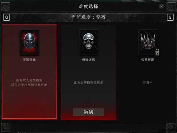 游戏虽然是一款肉鸽玩法游戏,但却可以选择难度,总共三种难度:坚盔征途、颅冠试炼、铁冕狂潮!