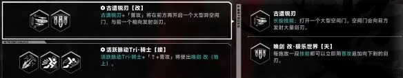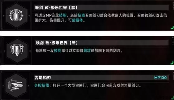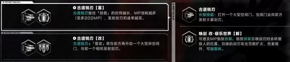 2、古遗锐刃可以打开一个大型空间门,召唤大量利剑横向攻击敌人。与荧光利刃相反,古剑由于出手前摇长,非常需要抓住恰当的输出时机。