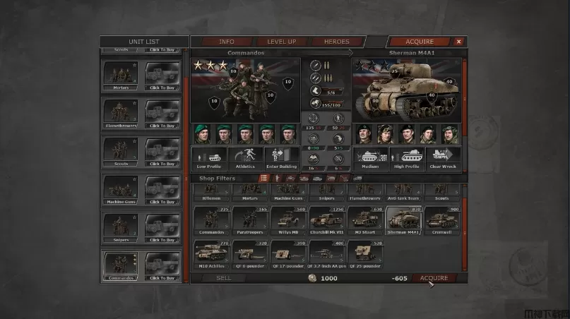 指挥部二战(Headquarters World War II)是一款快节奏回合制战略游戏,背景设定在1944年的诺曼底战役期间,玩家将自由选择加入同盟国或者德国的军队,体验诺曼底登陆期间的激烈战斗。游戏允许玩家组建并升级自己的部队,并在战斗中使用炮火轰炸、飞机袭扰等战场支援。
