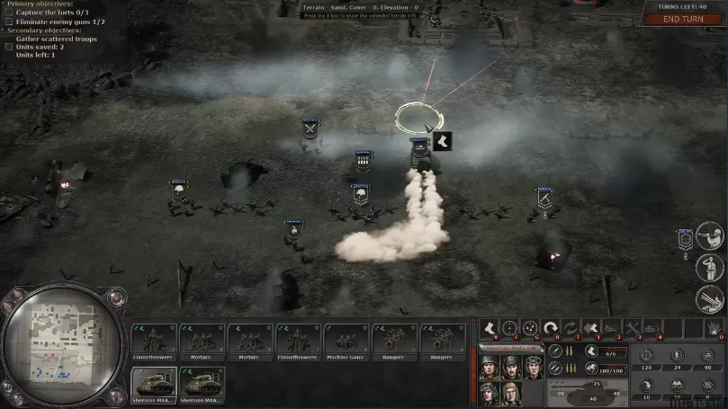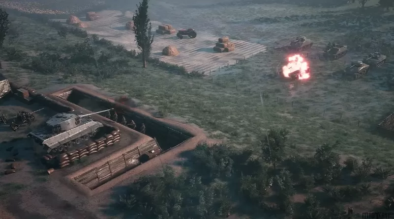 4、在开阔且没有掩体的地带,可以优先使用坦克开路,防止步兵单位有过大损失,迫击炮小队随时准备在坦克受击时定点发射烟雾弹。