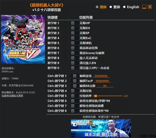 超级机器人大战v修改器是专为机甲战斗类游戏《超级机器人大战v》制作的游戏修改辅助软件,由知名团队风灵月影倾力推出打造。