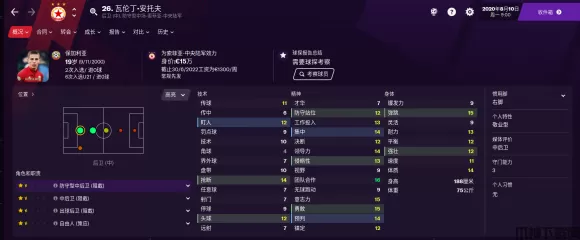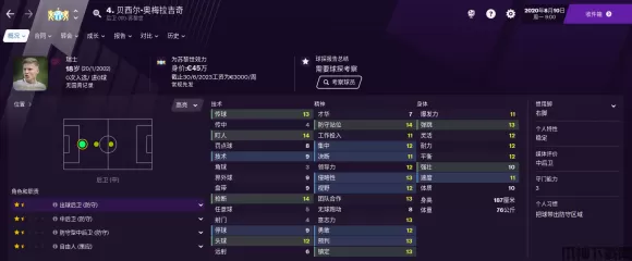 18岁的中后卫,督项属性都非常不错,但身体属性较弱,潜力很高值得培养。