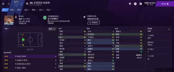 19岁的小将,各项属性都在及格线以上,具有很高的潜力。隐翥不错很容易就能练起来,也可以踢防守型后腰位置。