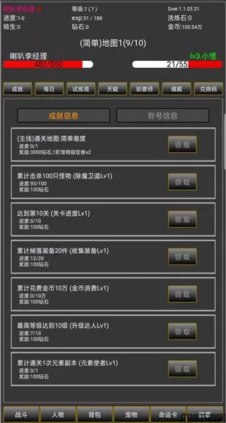 5、前面推图1阶宠物搭配(攻速+生命+物攻+物攻+物理追加),这样的搭配 全部100级就能过难度1-50了