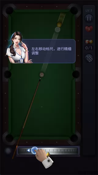 1、在屏幕下方可以滑动刻度条来调整击球角度。