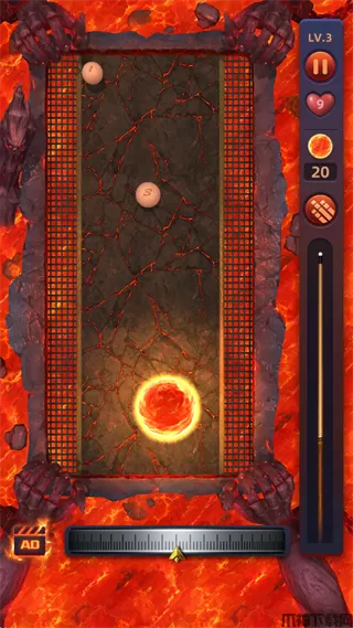 6、需要火球不断的吞噬比自己数字更小的白球,从而提升自己的数字,直至吞完所有的白球,也可以通过不断的撞击台壁提升火球的数字,进而完成比赛,如下图关卡。
