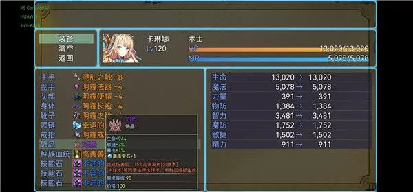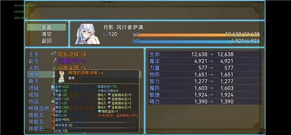 6、你可以查看每个角色的状态属性值,并为他们装上强大的装备以及学习强力的技能;