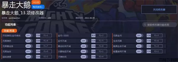 暴走大鹅十三项修改器使用说明