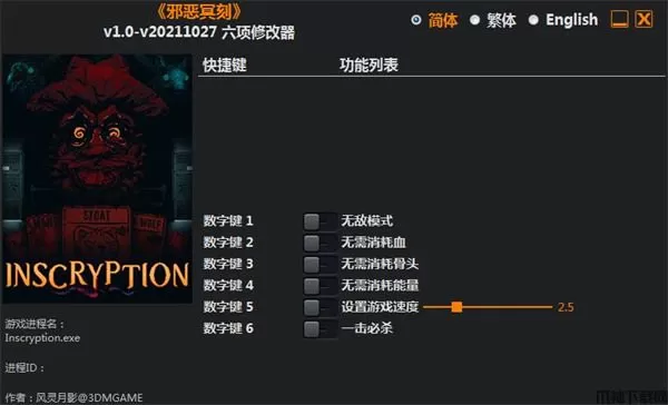 邪恶冥刻修改器是针对同名游戏制作的游戏数值修改工具。它可让玩家获得更好的游戏体验,提供了无敌模式、无需消耗血、无需消耗骨头、无需消耗能量、设置游戏速度、一击必杀等修改功能,让玩家可以降低游戏难度,更好的畅玩,有需要的玩家可以下载一试。