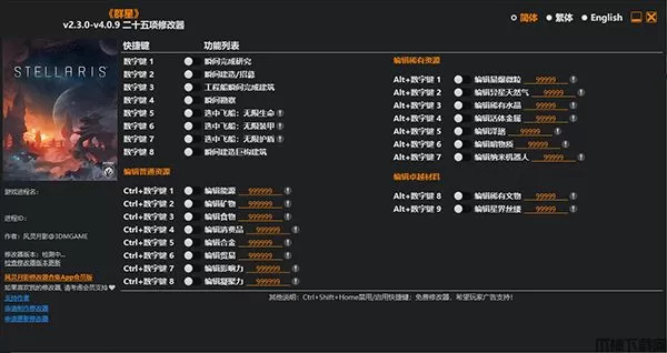 群星修改器是一款专业用于群星游戏的游戏辅助工具,提供无限能量点、无限士气、无限影响力、无限团结、无限食物、无限物理研发等强大功能,可帮助用户更好地进行游戏的体验。