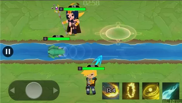 2、河道分割战场,一个英雄在一边,这样简单地操作模式,只需要用两个手指就可以完美操控,还可以通过移动躲避对手的技能,不断提升段位