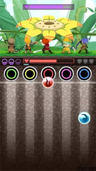 1、进入战斗模式之后,玩家要利用手指滑动法力珠子到正确的勇者身上,勇者集满所需要的法力即可放出强大的技能并造成巨大的伤害。