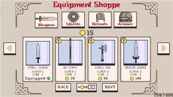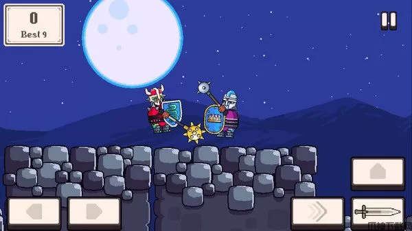 骑士大乱斗(Knight Brawl)是一款2D卡通画面的动作冒险游戏。并且游戏采用了微像素游戏画面,使得整体质感非常的清晰,让玩家可以有极佳的视觉体验。而且游戏内还有着多个场景和地图供玩家玩耍和挑战,而且这些地图场景内还有多种任务可以接取,完成任务可以获得丰富的奖励。游戏中玩家将会扮演一名剑士,将你手中的标枪瞄准你的敌人射出去,而且要瞄准空档期再投射,也要注意敌人可能会拿起手中的盾牌进行格挡,需要趁他们举盾空档发起攻击。