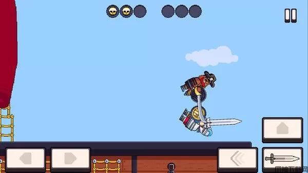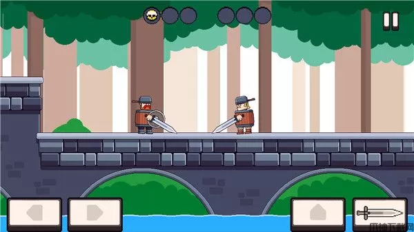3、操作简单,只需要玩家操控四个按钮来控制角色的左右移动、跳跃和攻击,普通的场景很简单,但是要是在高难度任务场景中,玩家就需要利用精准操作来战胜敌人
