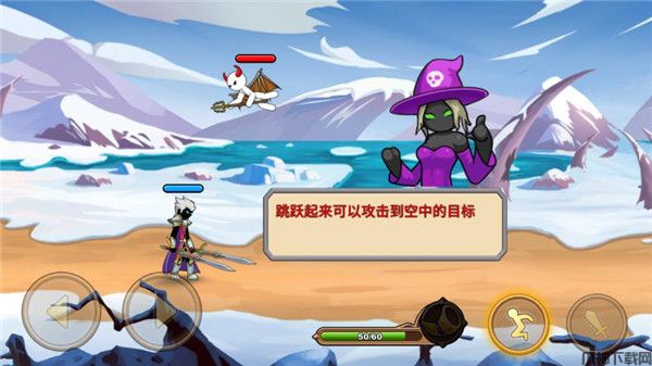 4、点击跳跃按钮,就能跳跃起来攻击到空中的目标,还能释放技能升龙攻击杀死他。