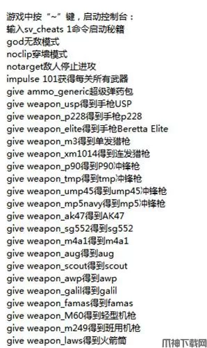 以下是秘籍的指令,在输入sv_cheats 1后可以用。