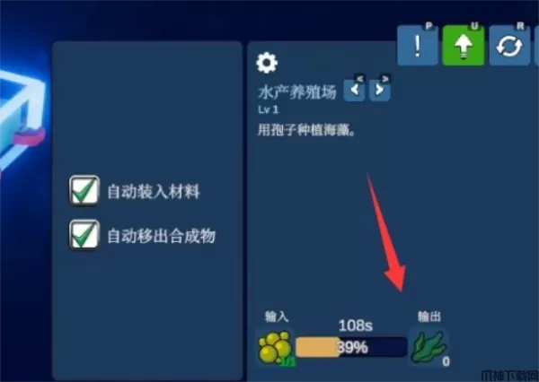 2、然后去海底建造水产养殖场,建造完成后,往其中投入孢子,等待一段时间就可以产出海藻了。
