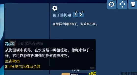 3、孢子也是很重要的资源,可以通过采集海珊瑚的方式获取,能够用来种植任何海洋植物。